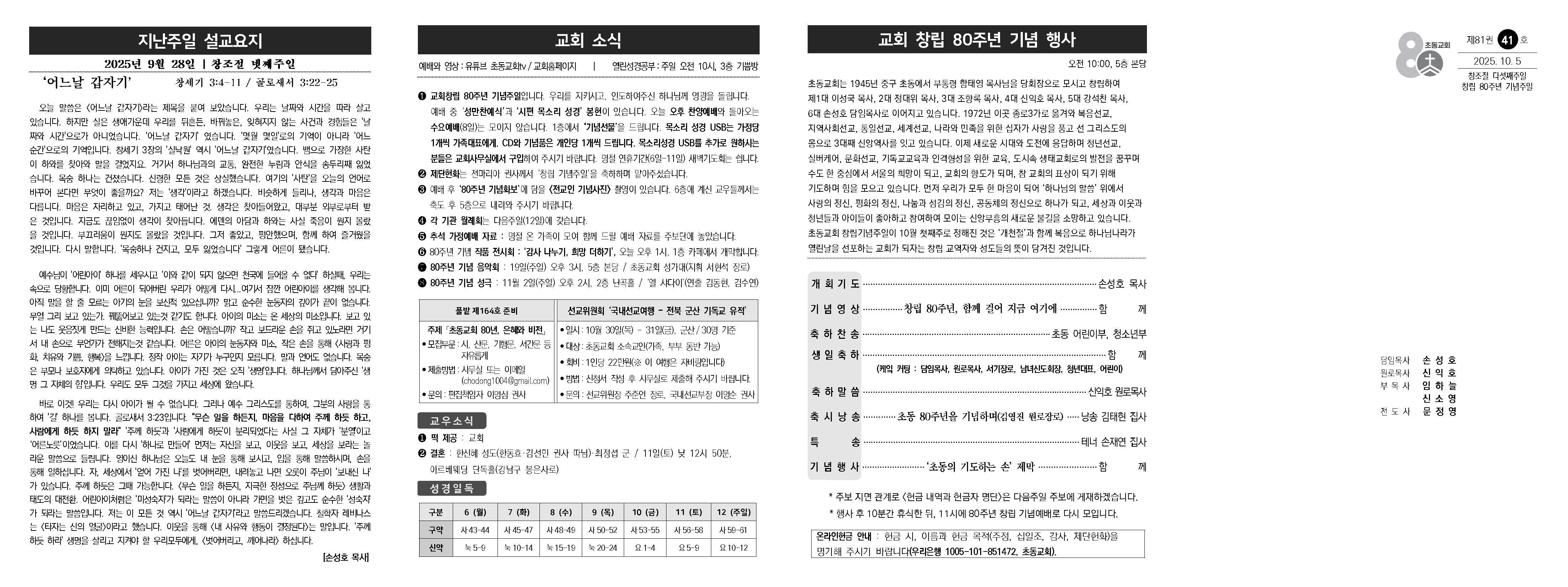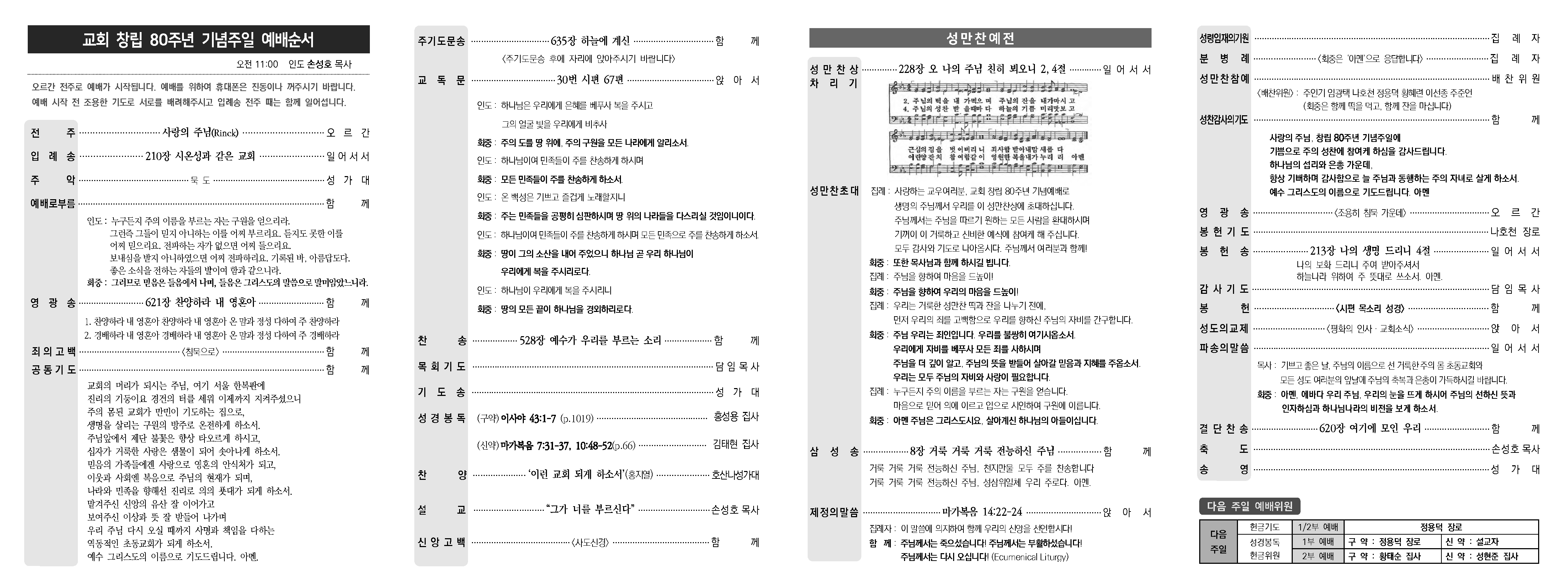 이번주일(10월 5일)창립기념주일에 뵙겠습니다.