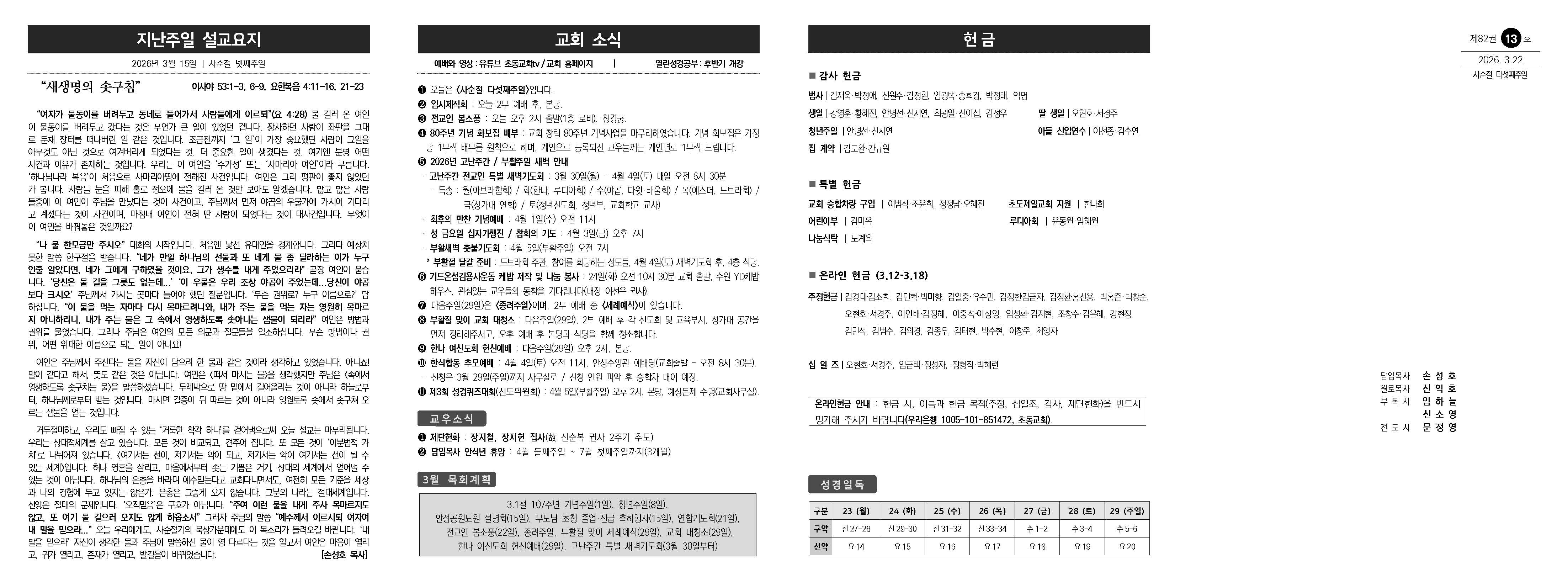 2026년 3월 22일(주일) 주보입니다.