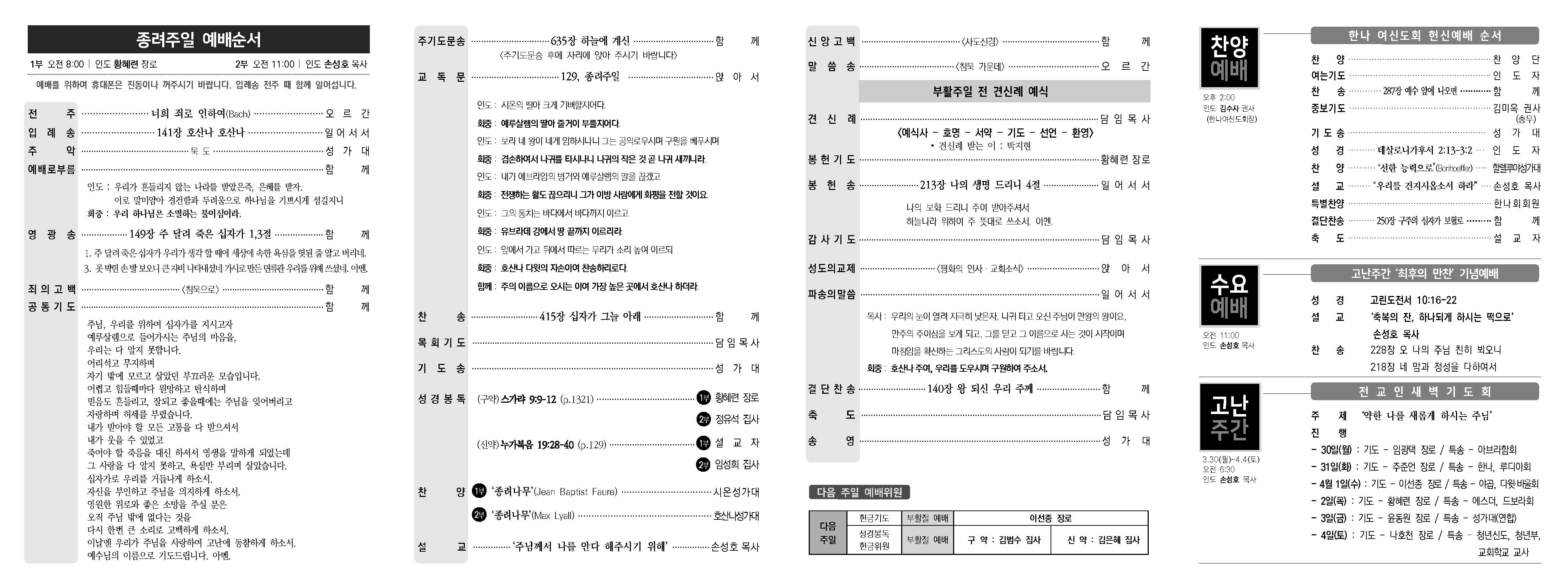 2026년 3월 29일(주일) 주보입니다.