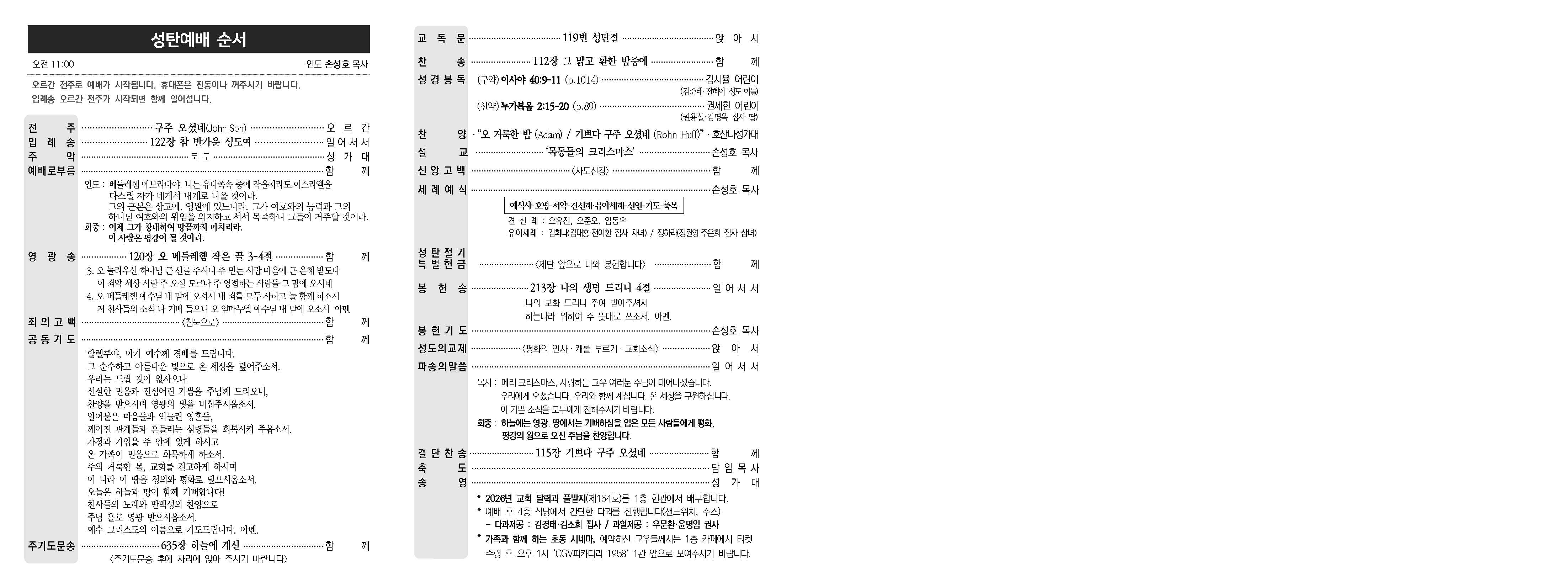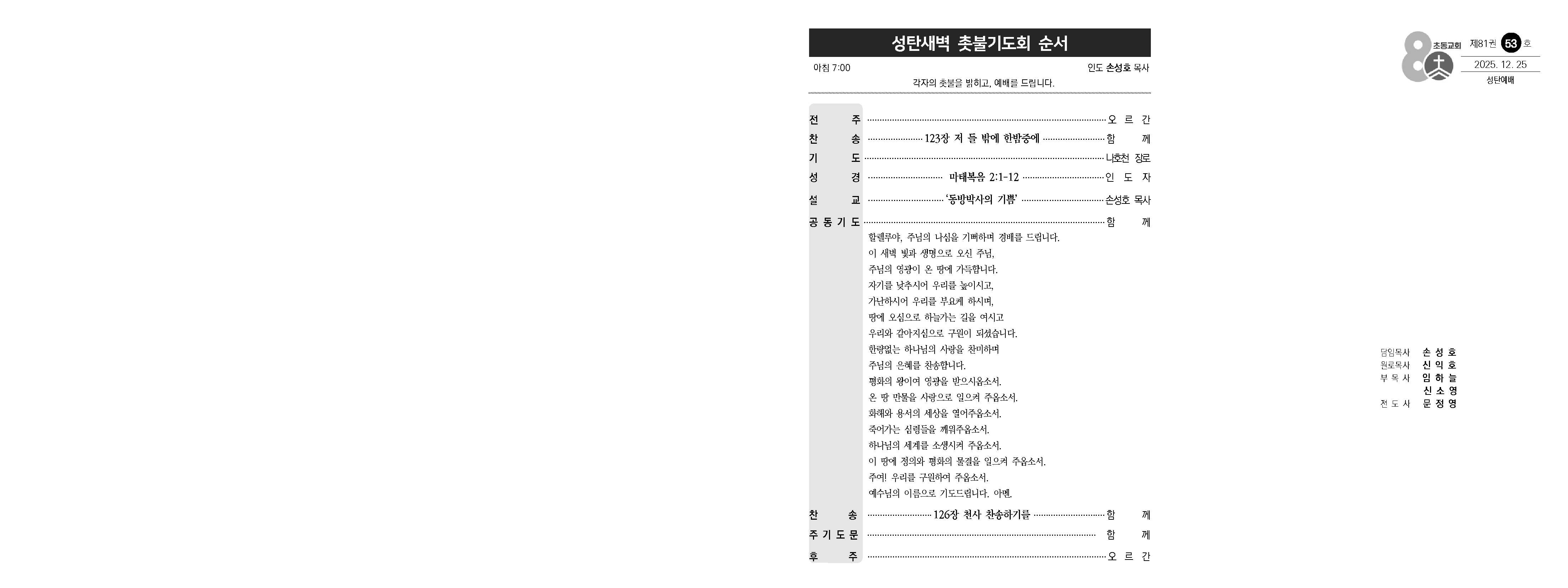 2025년 12월 25일 성탄절 예배 주보입니다.