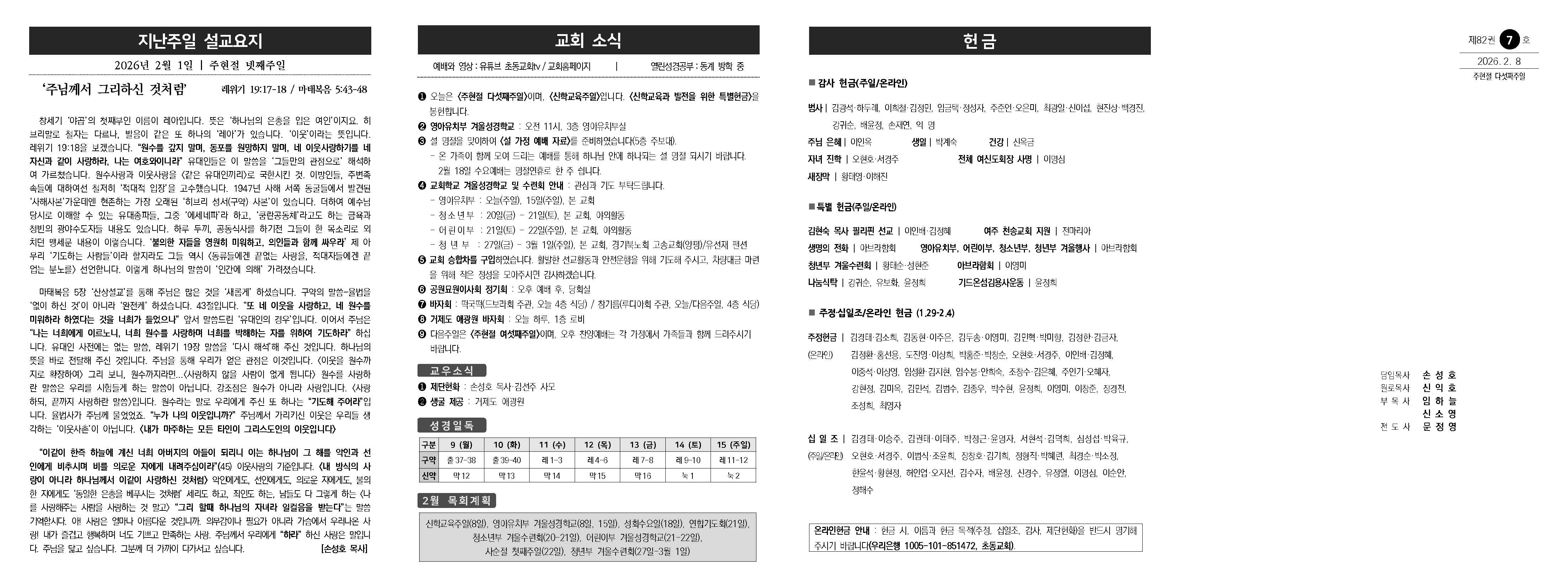 2026년 2월 8일(주일) 주보입니다.