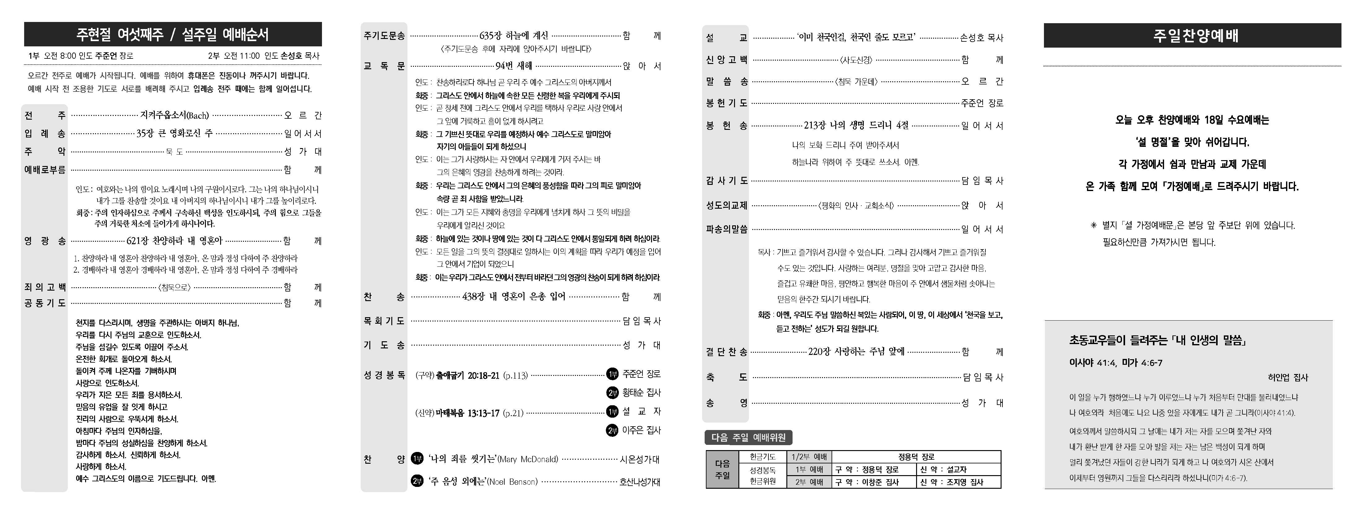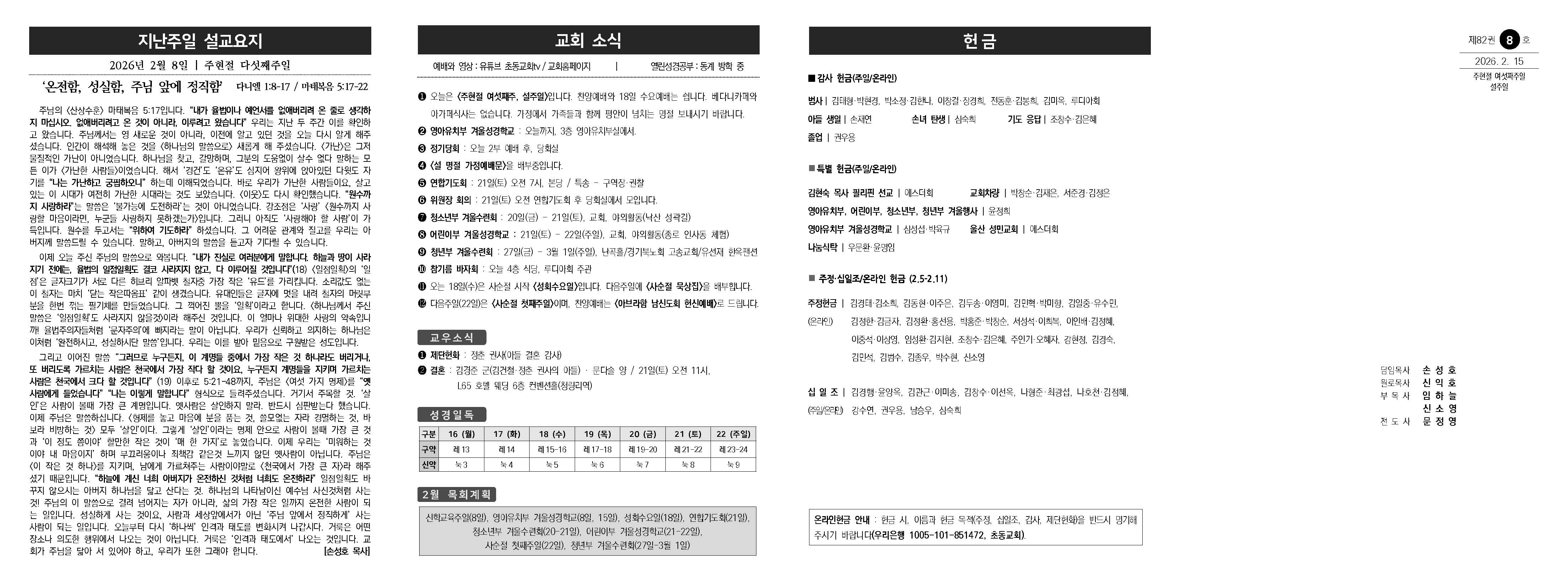 2월 15일(주일) 주현절 여섯째주 / 설 주일 주보입니다.